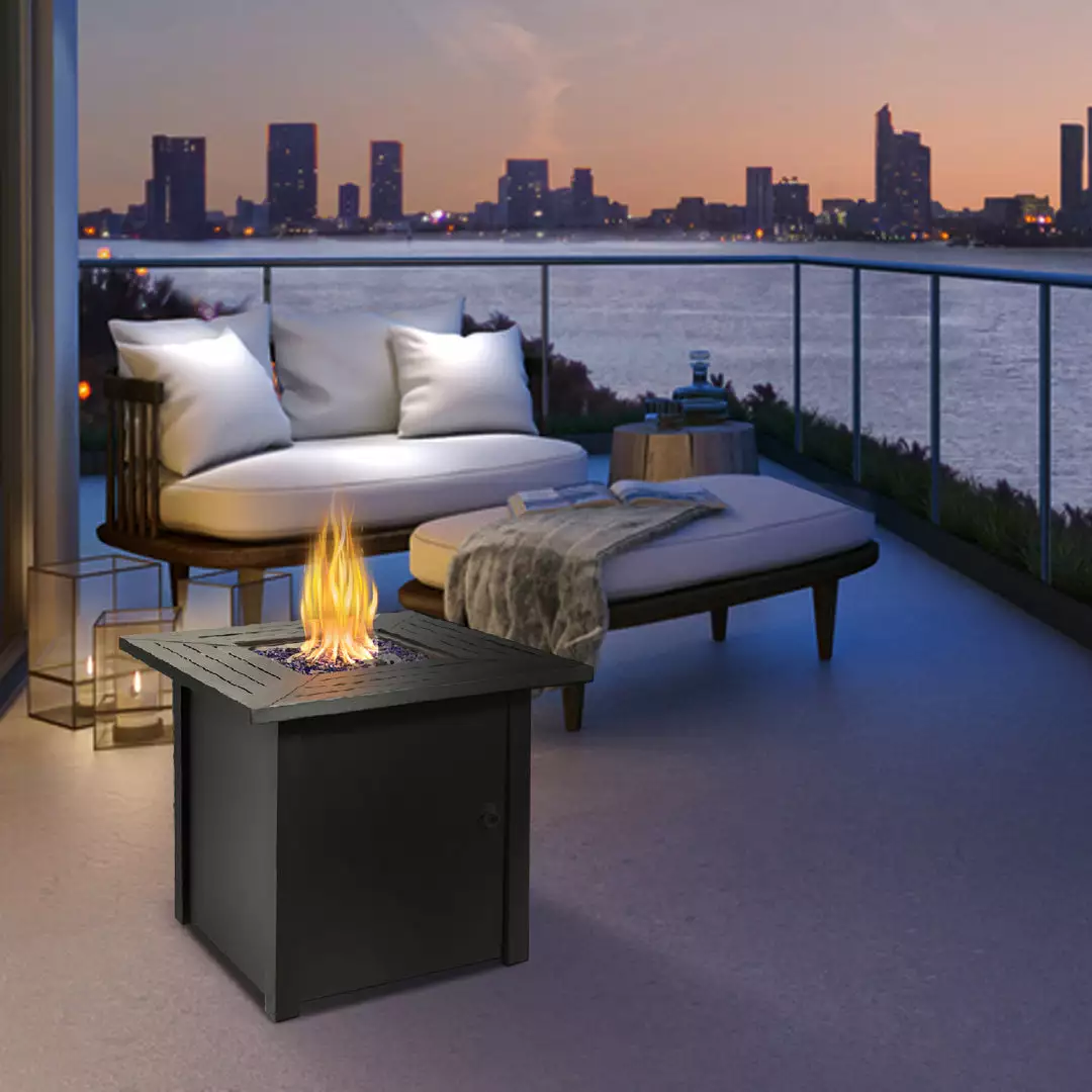 Enjoy the warm glow of a fire with this rust-resistant steel fire table. Featuring 4 , BTU heat output and integrated ignition, you can enjoy stable and ash-free green burning without the mess. With the included lid on, it can be easily converted into an outdoor multifunctional table. Adding to the elegance, glass rocks are designed to enhance flickering effect.