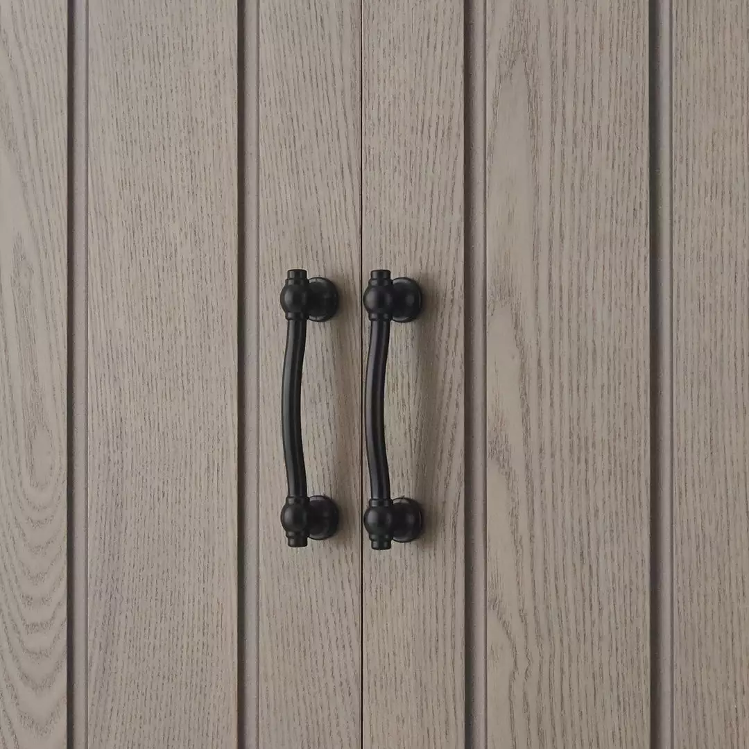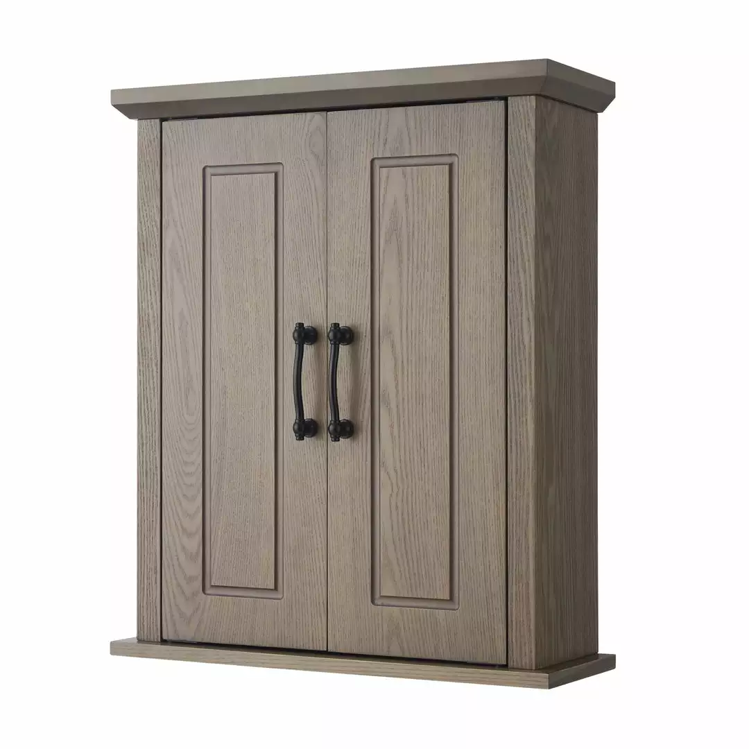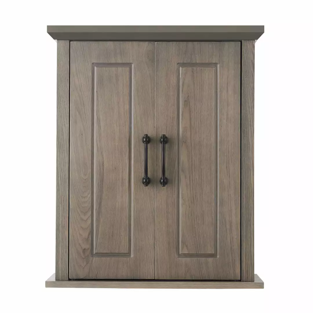 - STYLISH CABINET: Features a rustic salt oak finish with two paneled doors and matte black pulls for an elevated and stylish addition to your space