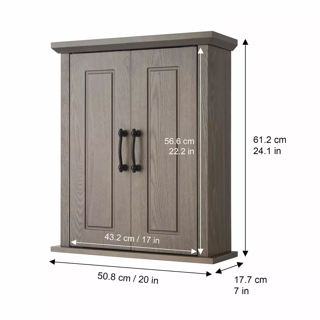 Upgrade your home storage while adding modern farmhouse decor with the Teamson Home Russell Modern Farmhouse Wooden Removable Wall Cabinet. This decorative cabinet features a rustic salt oak finish with two paneled doors and matte black pulls for an elevated and stylish addition to your space. The interior adjustable shelf helps to reduce clutter and keep your home tidy, and its versatile design can be used in the bedroom, bathroom, living room, or in any room around the home. Constructed from durable engineered wood, this wall cabinet is built to provide you with long-lasting organization. Easy, step-by-step instructions and all of the hardware needed are included for quick assembly. Purchase this stylish cabinet alone or with other items from the Russell collection for a cohesive, updated look. The Teamson Home Russell Wooden Removable Wall Cabinet with 2 Doors measures 7″ x 20″ x 24″ to provide removable storage without taking up too much space in your living area.
