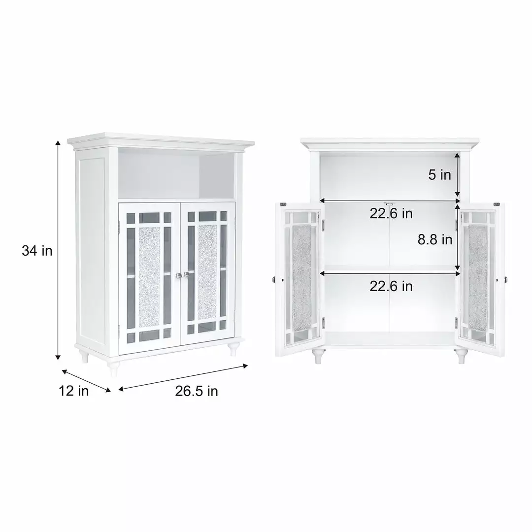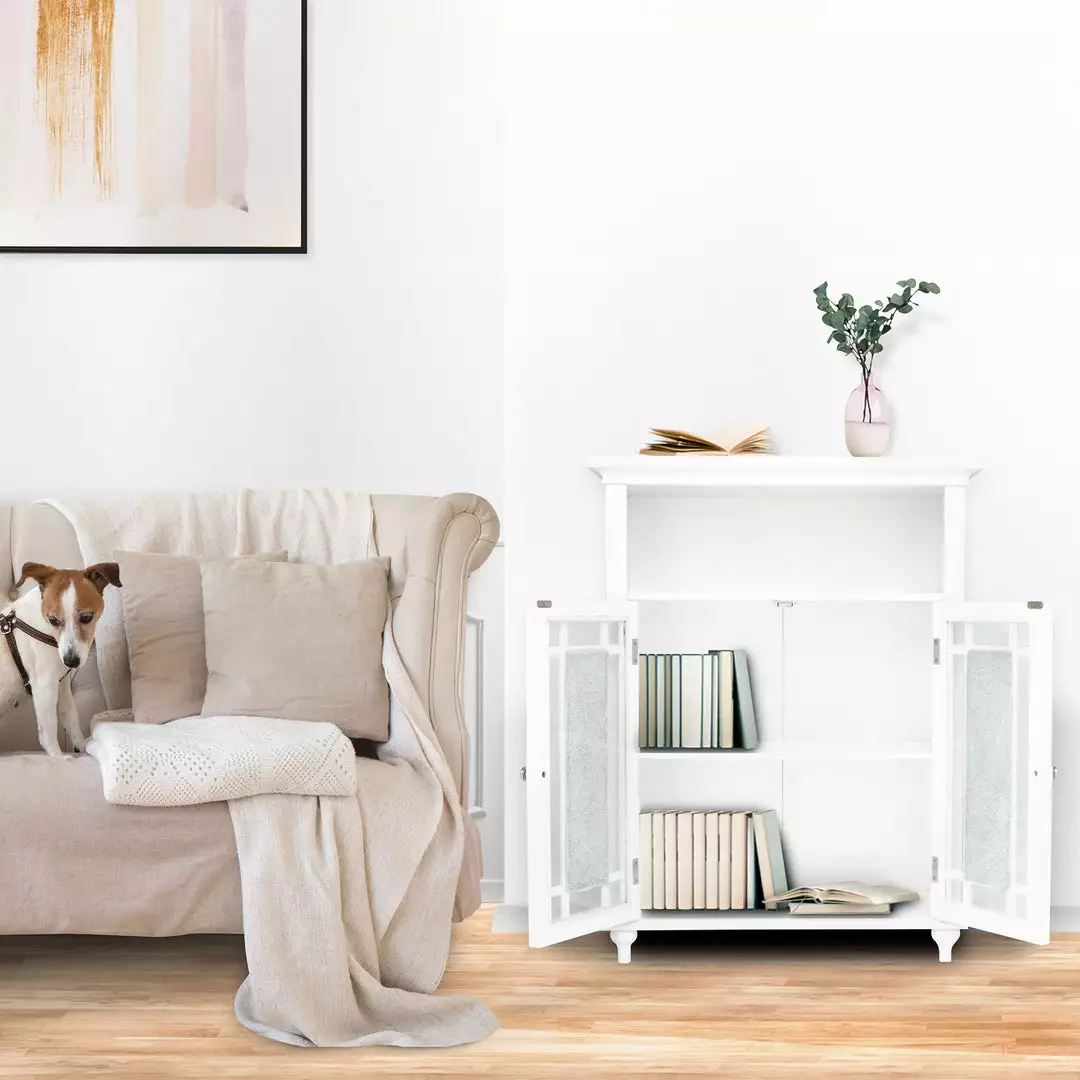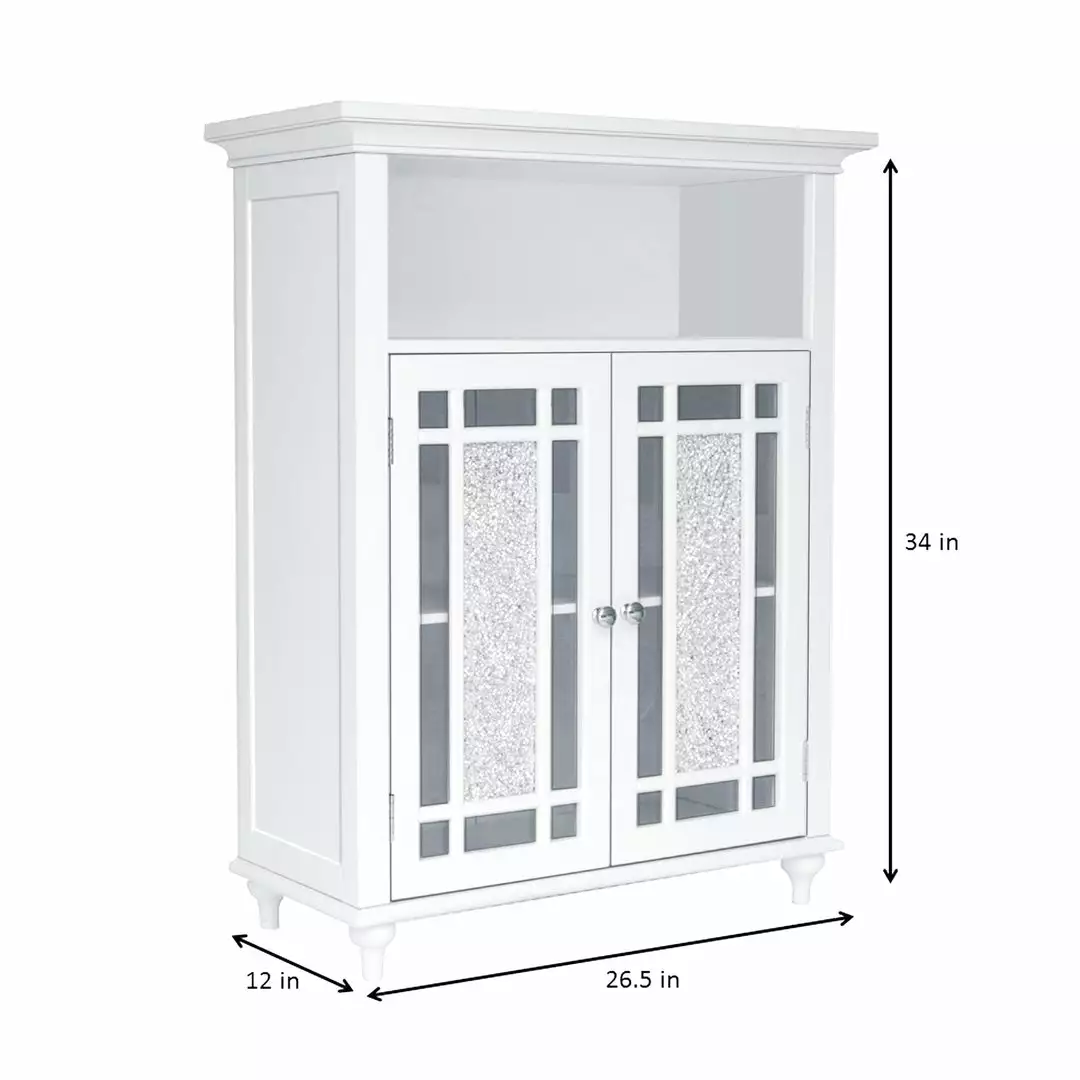 Teamson Home Windsor Wooden Floor Cabinet with Glass Mosaic Doors, White