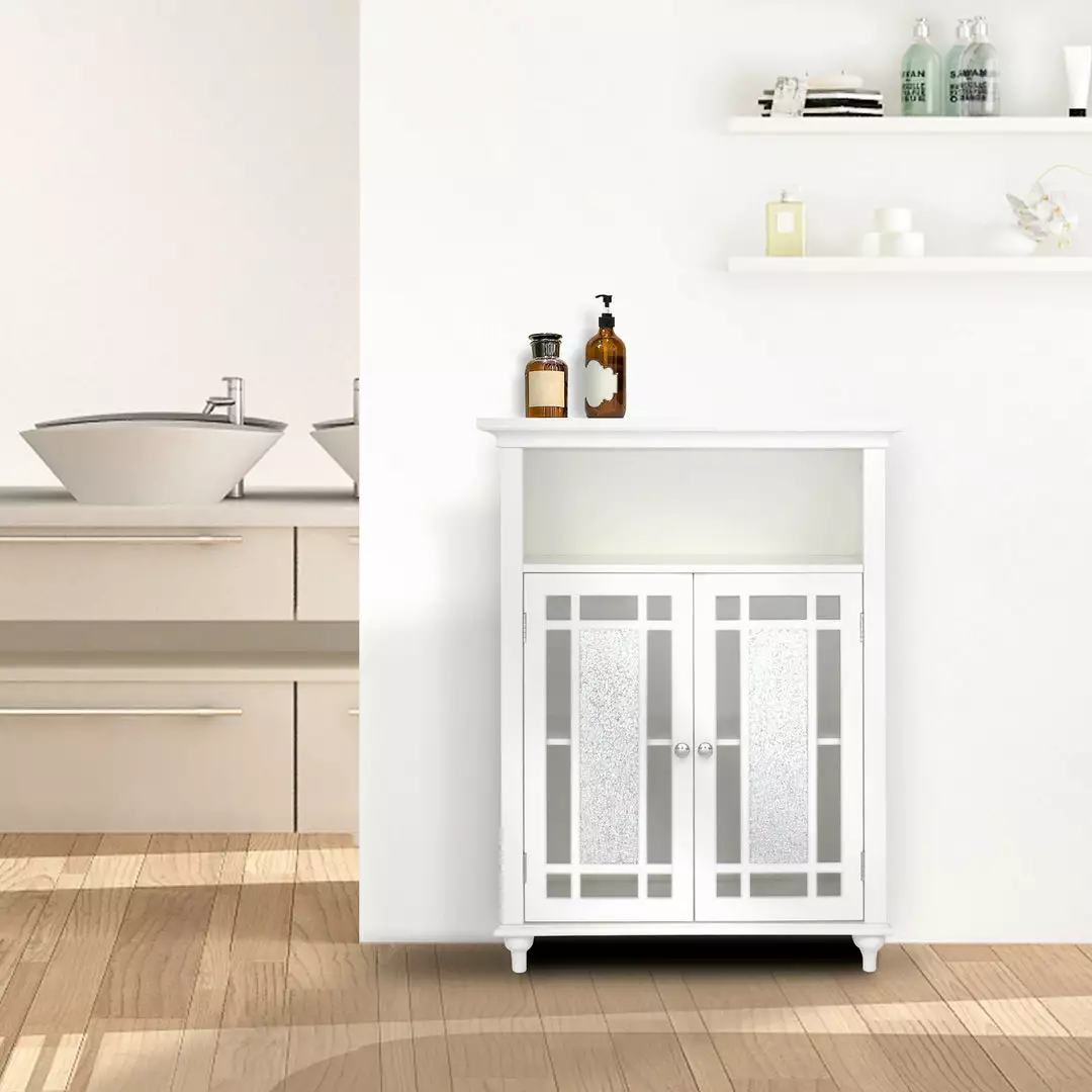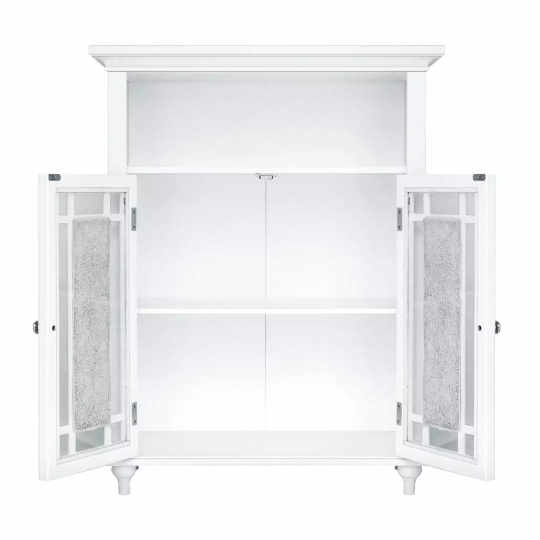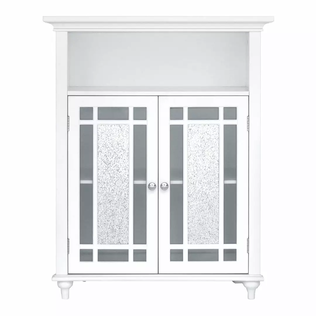 Teamson Home Windsor Wooden Floor Cabinet with Glass Mosaic Doors, White