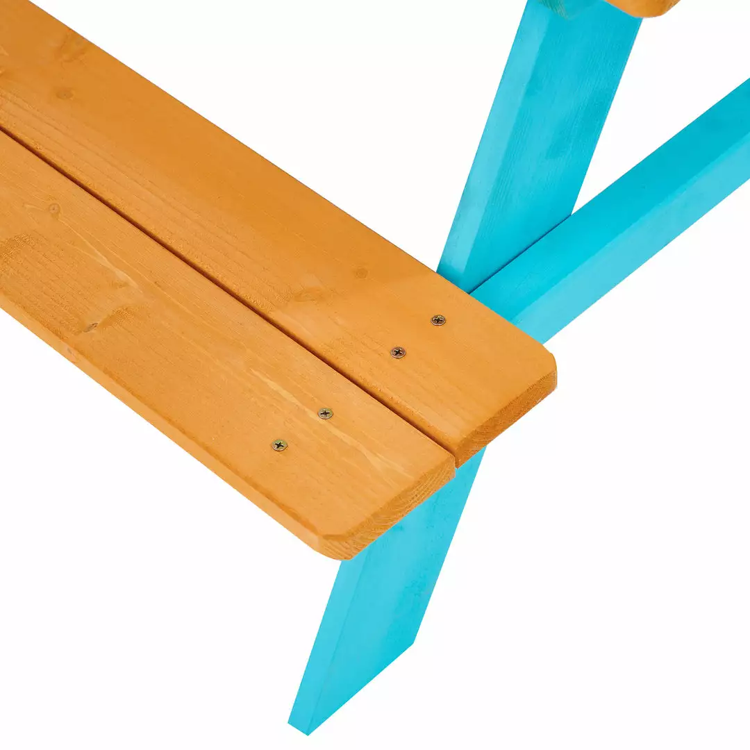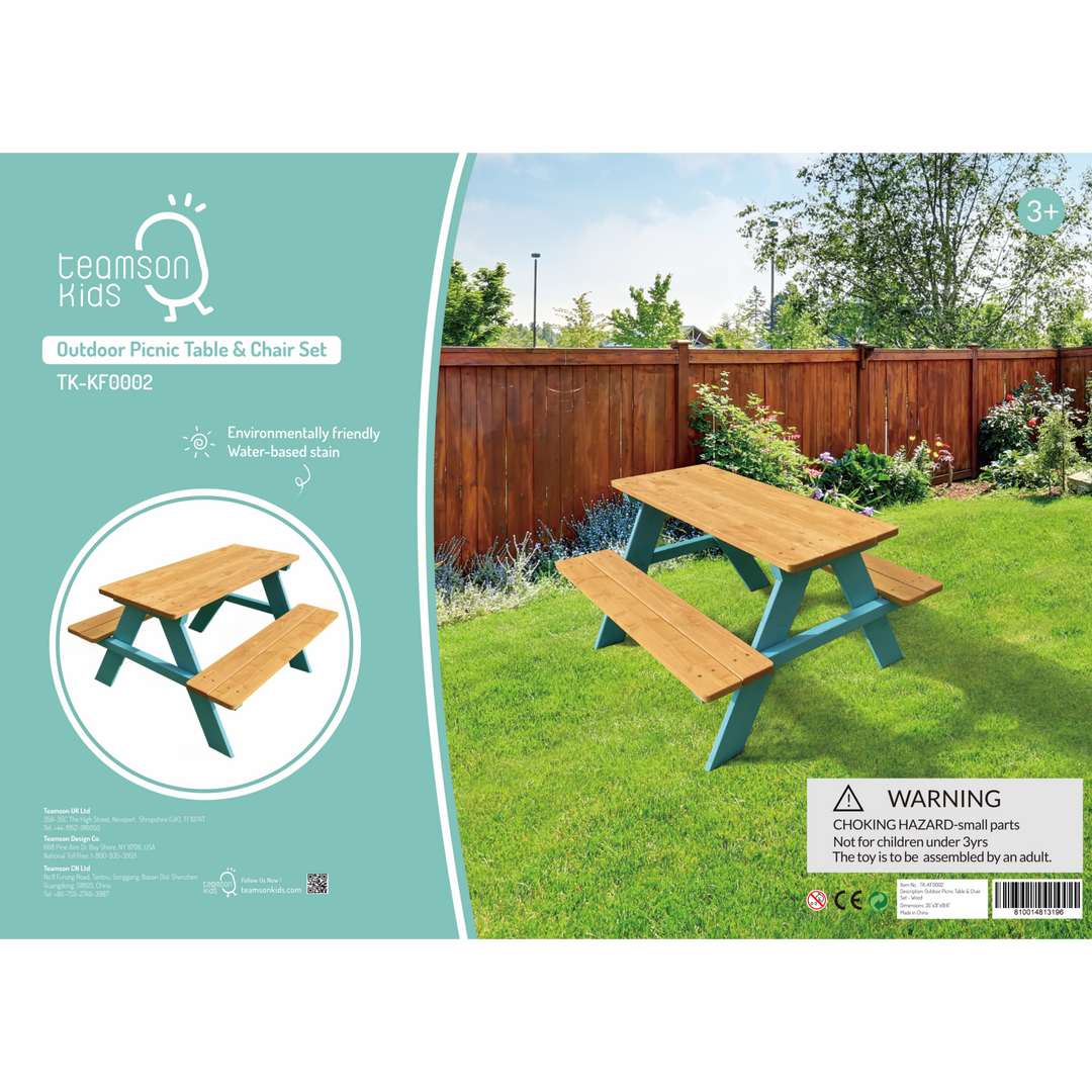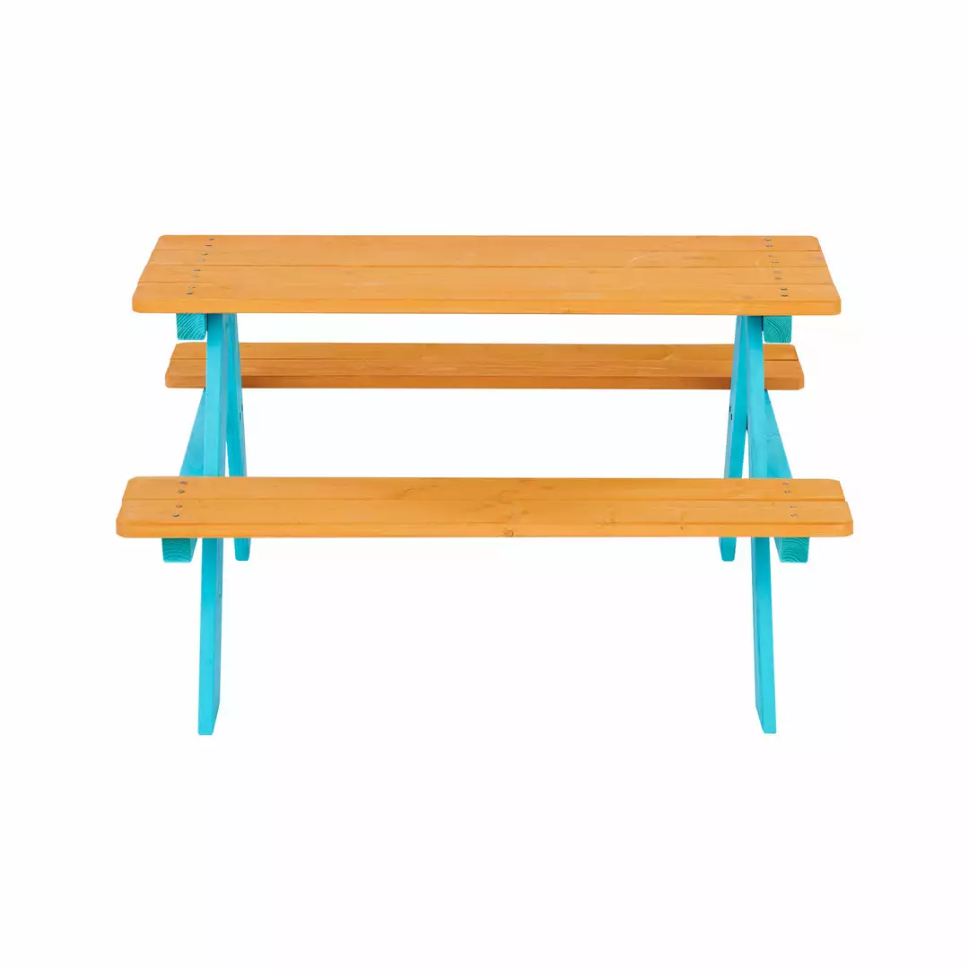 Teamson Kids Child Sized Wooden Outdoor Picnic Table, Warm Honey/Aqua