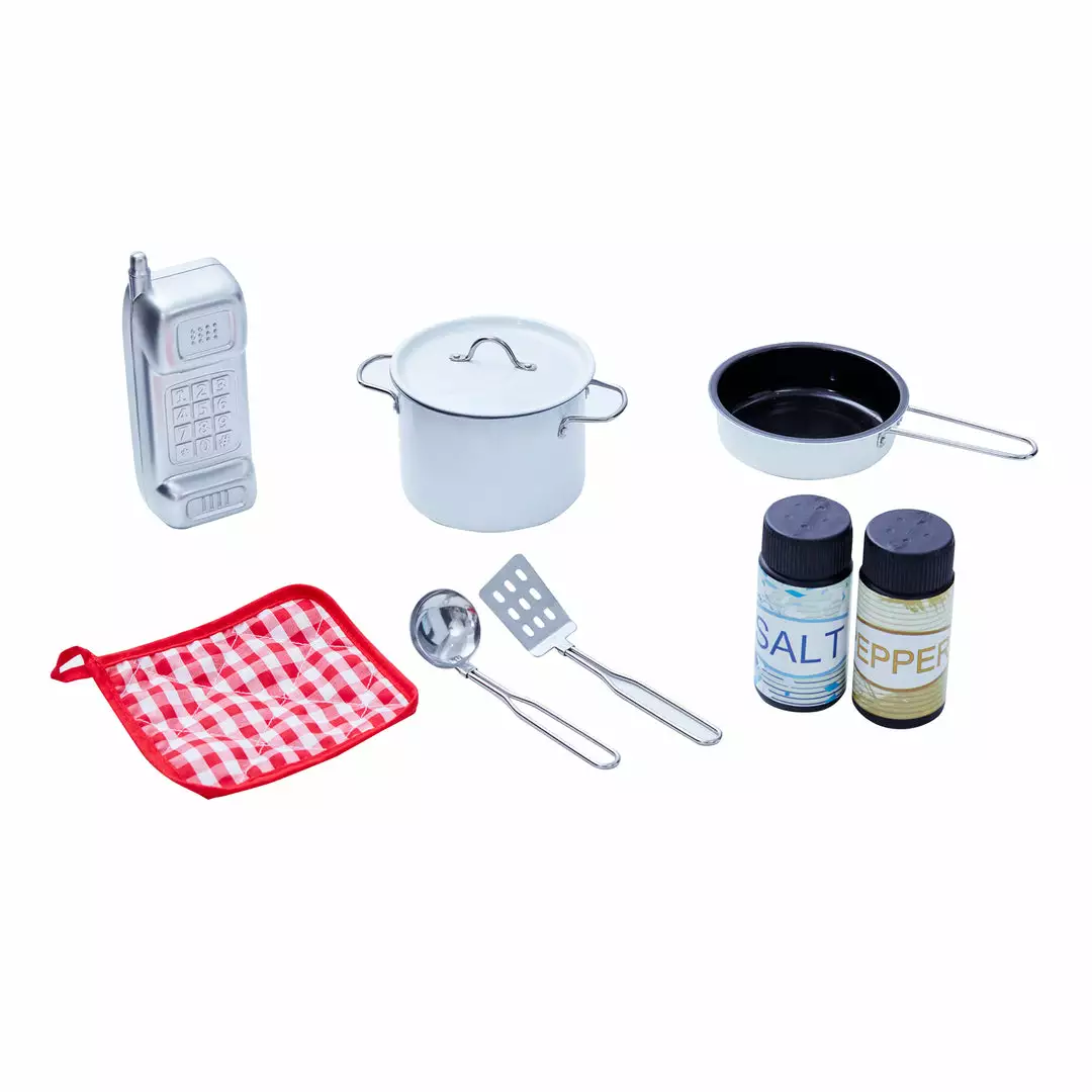 - Retro kitchen playset with natural wood accents completes any home or playroom