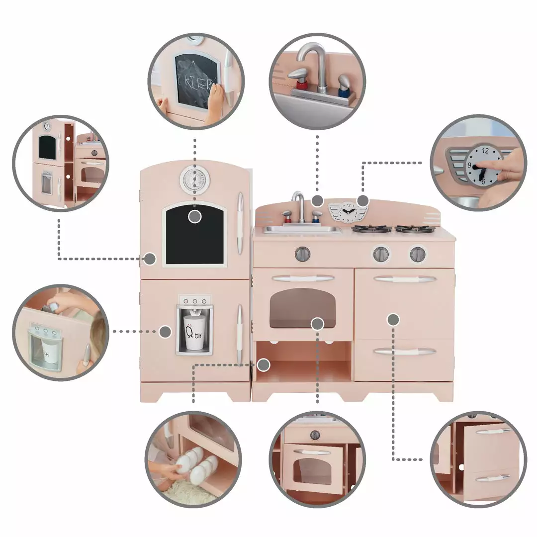 - KIDS PLAY KITCHEN SET: Retro-style kitchen playset with a muted pink look is great for both boys and girls and completes any home, classroom, preschool, or daycare playroom