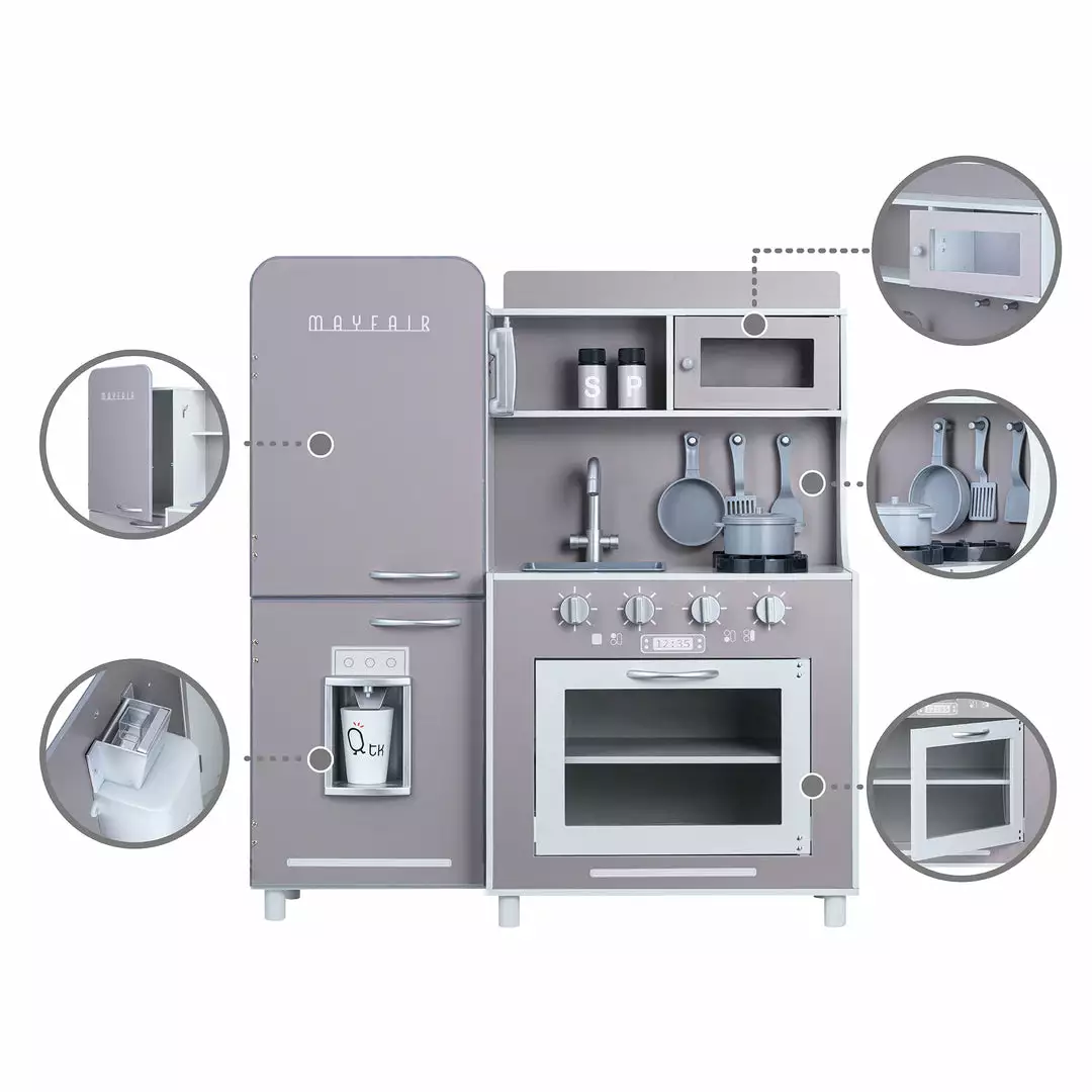 Teamson Kids Little Chef Mayfair Classic Kids Kitchen Playset with 11 Accessories, Gray