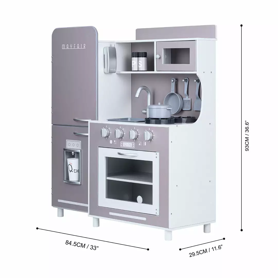 - KIDS PLAY KITCHEN SET: Retro-style kitchen playset with light gray accents is great for both boys and girls and completes any home, classroom, preschool, or daycare playroom