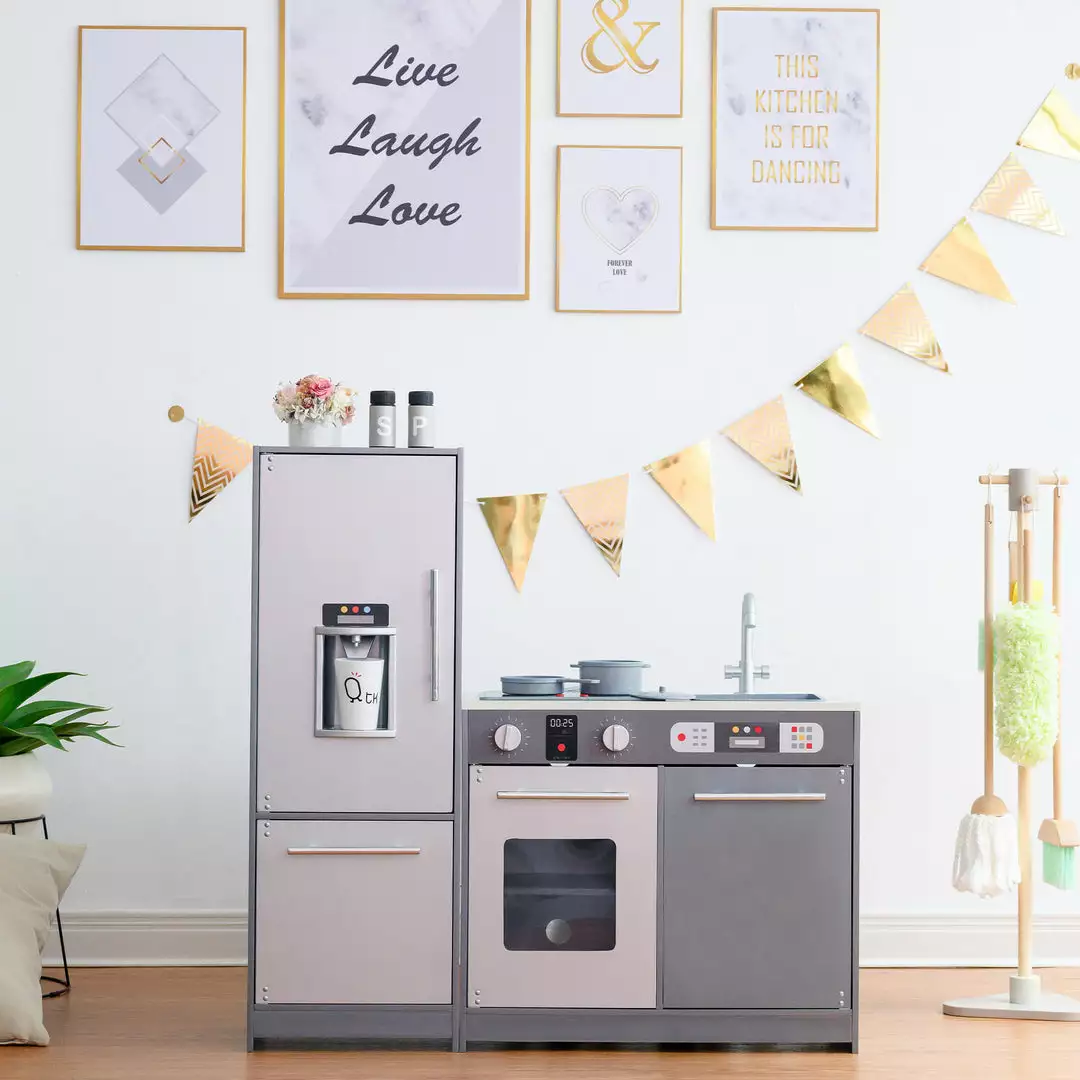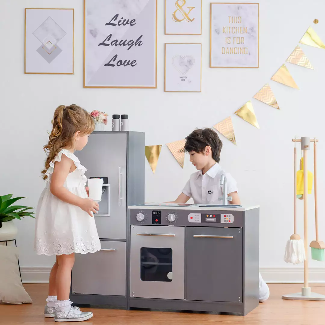 Teamson Kids Little Chef Milano Classic Kids Kitchen Playset with 10 Accessories, Gray