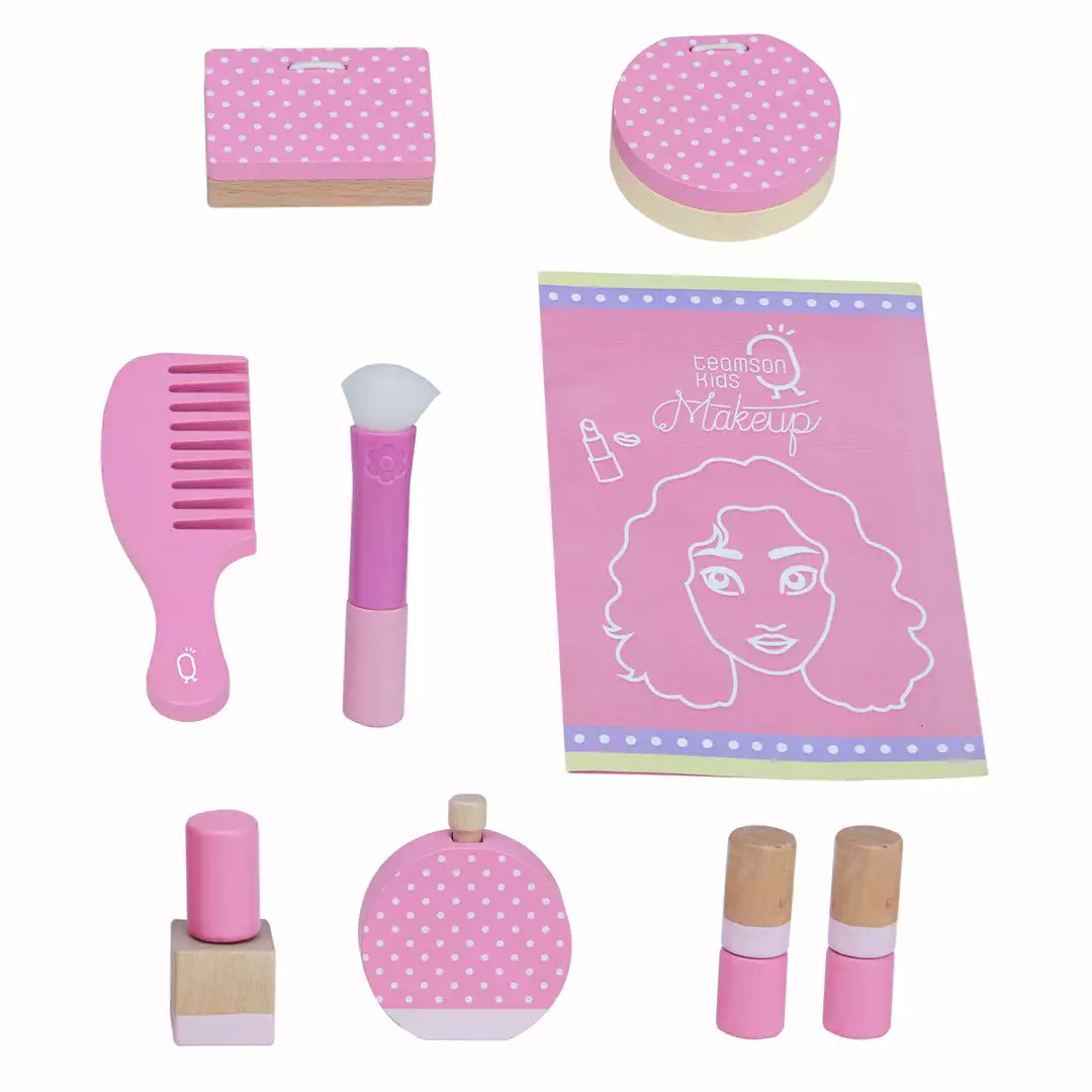 - 9 ACCESSORIES INCLUDED: Includes two lipsticks, one nail polish, one compact powder with puff, one eyeshadow with brush, one perfume bottle with spray nozzle, one brush, one comb, and one makeup instruction