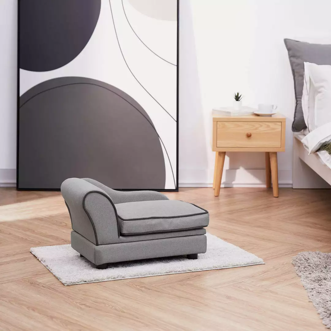 Tired of your pets taking over the couch? Get them their own! Brilliantly designed for maximum comfort and flaunting a classic Parisian look that’s perfect for the pampered pet, this Chaise Lounge Dog Bed for Cats and Small Dogs by Teamson Pets gives your furry roommate their own comfy spot without sacrificing style. Chaise’s soft linen-style upholstery and dark gray piping detail proves that your pet’s happiness doesn’t have to come at the cost of chic décor. A machine-washable removable cushion cover makes for easy cleanup, while its underneath storage is ideal for toys and blankets.